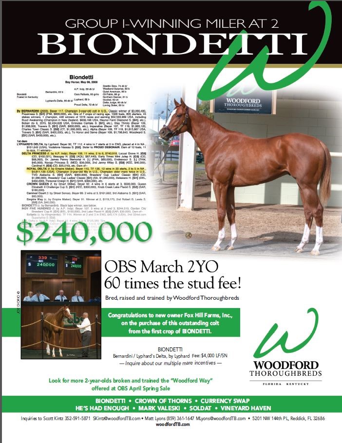 BIONDETTI 2 year olds sold for $240k, $125k etc