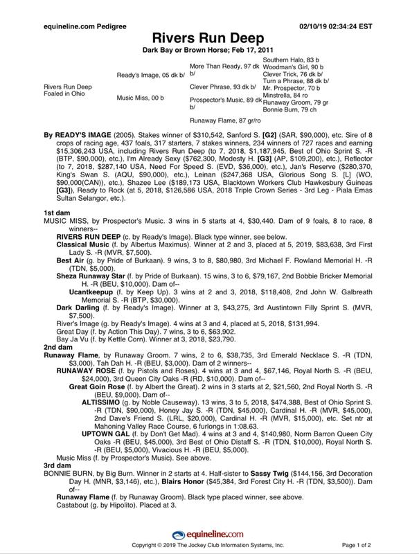 Dam: Music Miss by Prospector's Miss by Mr. Prospector